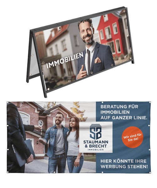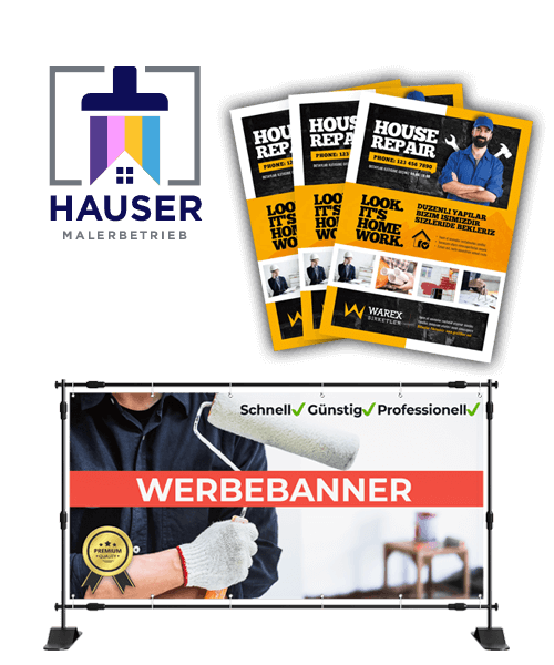 Mit Werbeflyern, Plakaten, Bauzaunbannern & Roll-Ups – perfekt für deinen starken Auftritt vor Ort.